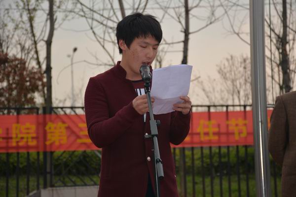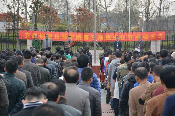 在庄严肃穆的升旗仪式后,校党委副书记高传来宣读了第三届“班主任节”活动方案,13高职建筑班汪春杰同学和班主任徐崇华老师分别作为学生和教师代表发言。最后,杨益民校长致辞并宣布第三届“班主任节”启动。