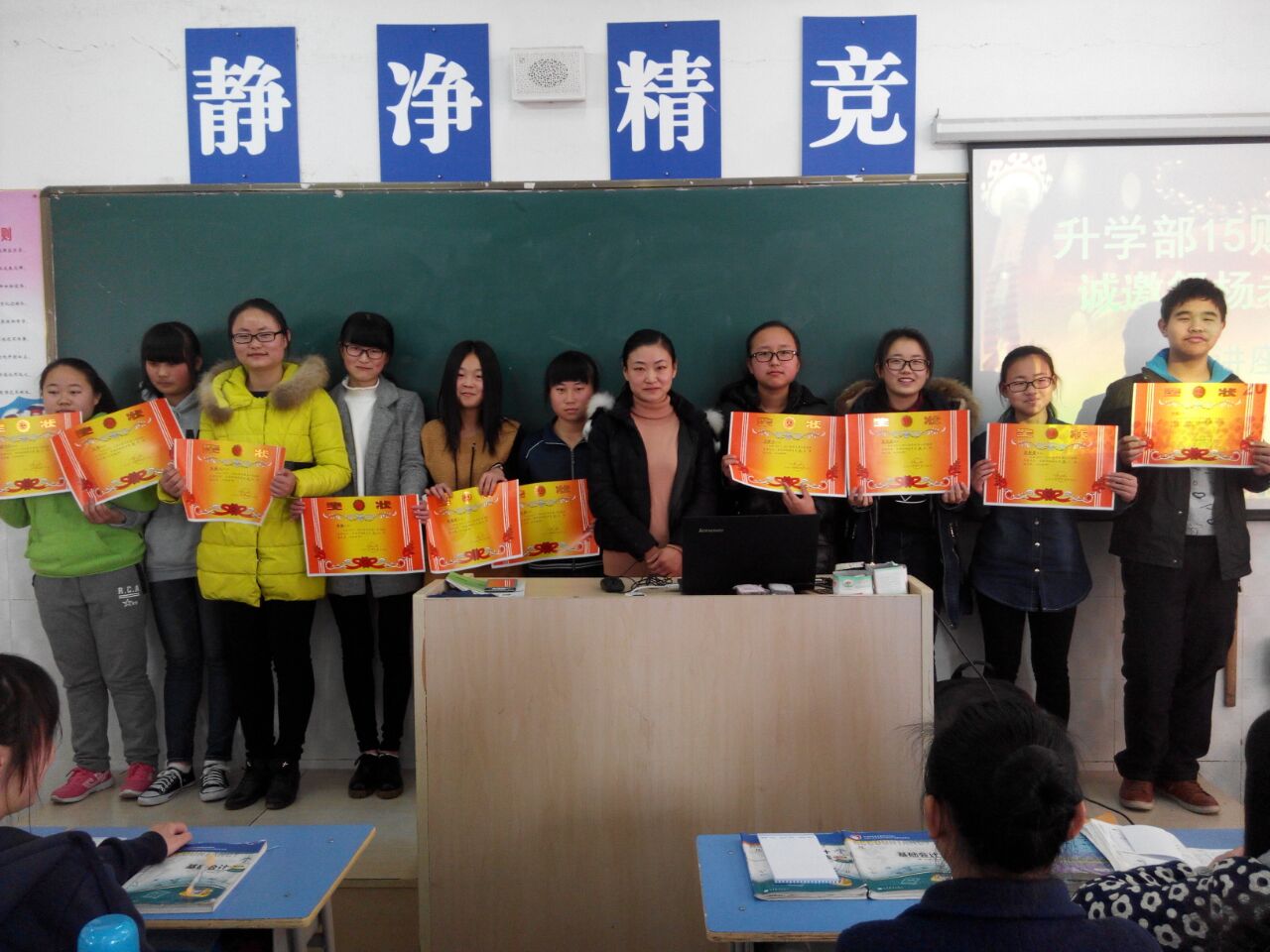舒老师以自己的亲身经历拉近与学生的距离,特别讲到如何感恩父母,并列举很多同学们容易忽略的事例,同学深有感触。其次,她用幽默的语言阐述了许多好的学习方法。最后,她为这次期末考试总分前十名的同学颁发了奖状。